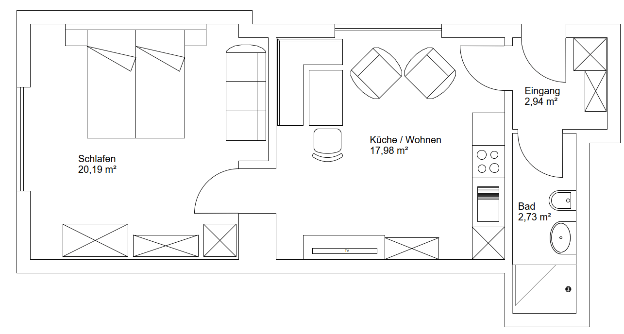 In einer 41 qm großen Wohnung, komfortabel ausgestattet.